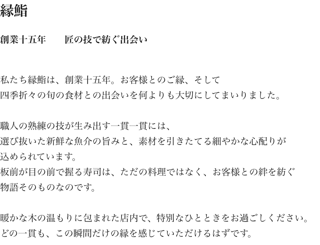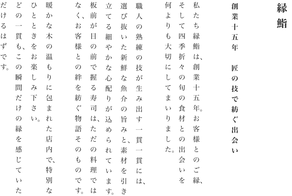 縁鮨では、ただの食事ではなく、「食材の旅」を体験していただけるよう