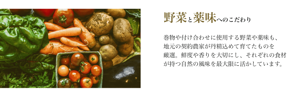 最大限に引き出すため、信頼できる漁師や農家と直接契約を結び、素材の質を徹底して追求しています。